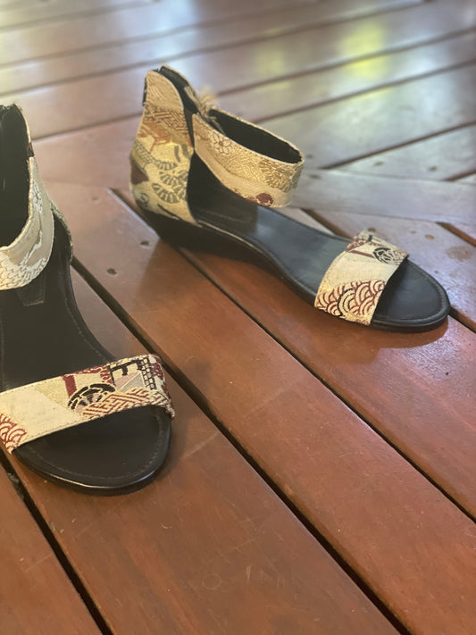 Earth Tones Japanese Scene Wedge Sandals SIZE 40