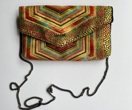 Metallic Gold and Orange Hexagon Clutch