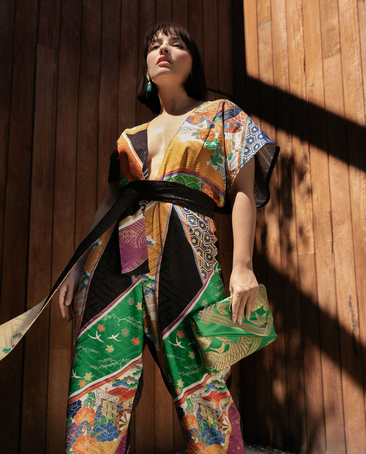 Emerald Green and Chrysanthemum Jumpsuit- Custom Order Available
