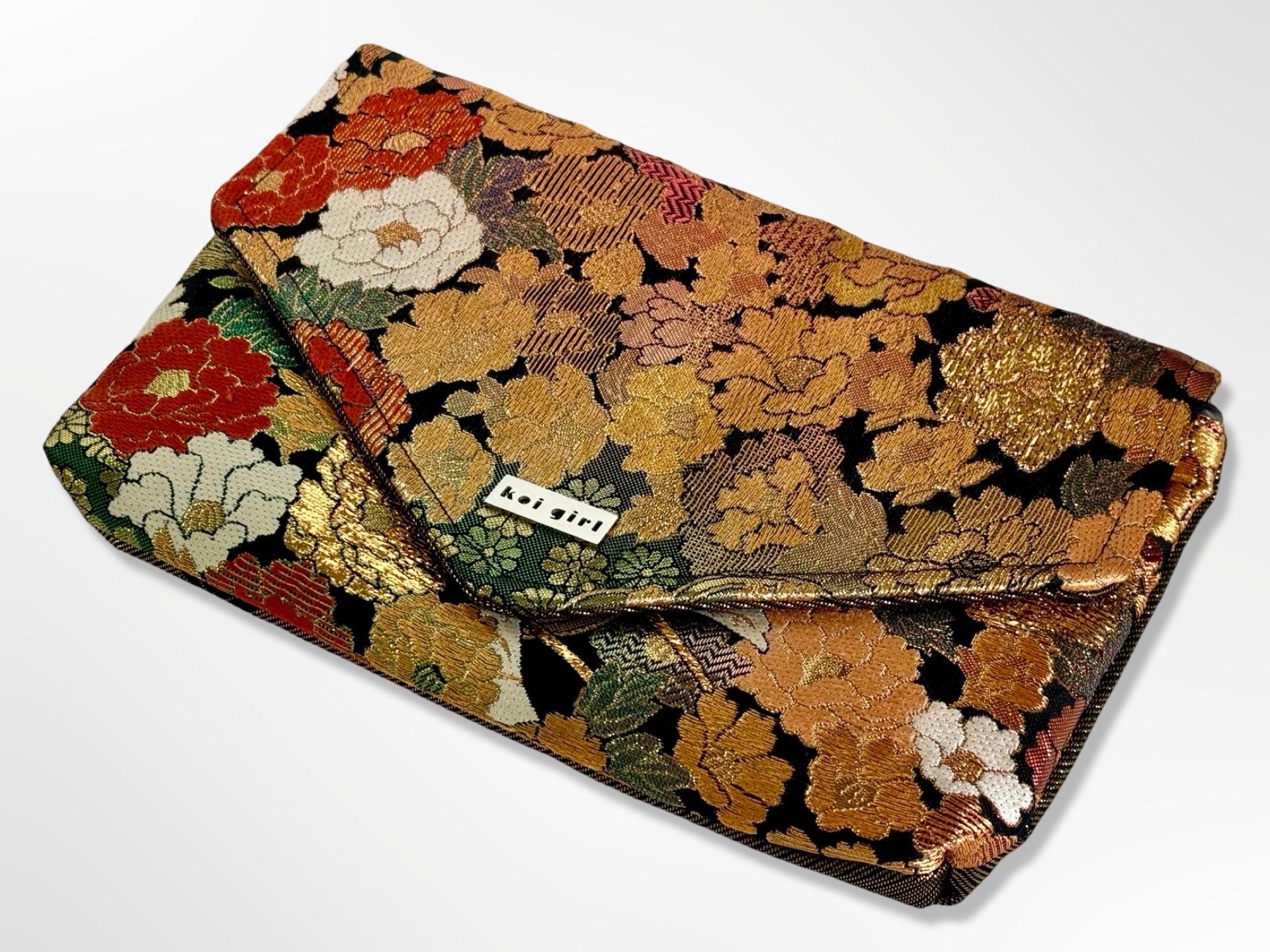Koi Girl handbags and accessories are made from authentic vintage obi and kimonos sourced directly from Japan. Japanese kimono and obi have particular designs, motives and colours which have specific meanings to the Japanese culture, each clutch has ties back to its origin and carries a history, secret or story behind it. Koi Girl handbags and accessories are designed to show off the beauty, colour and feel of the garment it once was. These vintage fabrics are transformed into a useable, wearable one of a kind statement pieces.